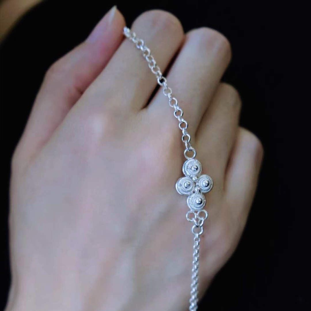 Our partnership with Miao artisans goes beyond transactions. We work directly with these artisans as a mutual commitment to uplift communities, ensuring fair compensation and fostering an environment where ancient skills flourish alongside new designs. From the grandeur of totemic butterflies and dragons to the simplicity of geometric shapes and symmetric designs that fit modern trends. Our collections blend the intricate with the minimal, all in 99% silver—making each piece not just softer and shinier, but with enduring value.